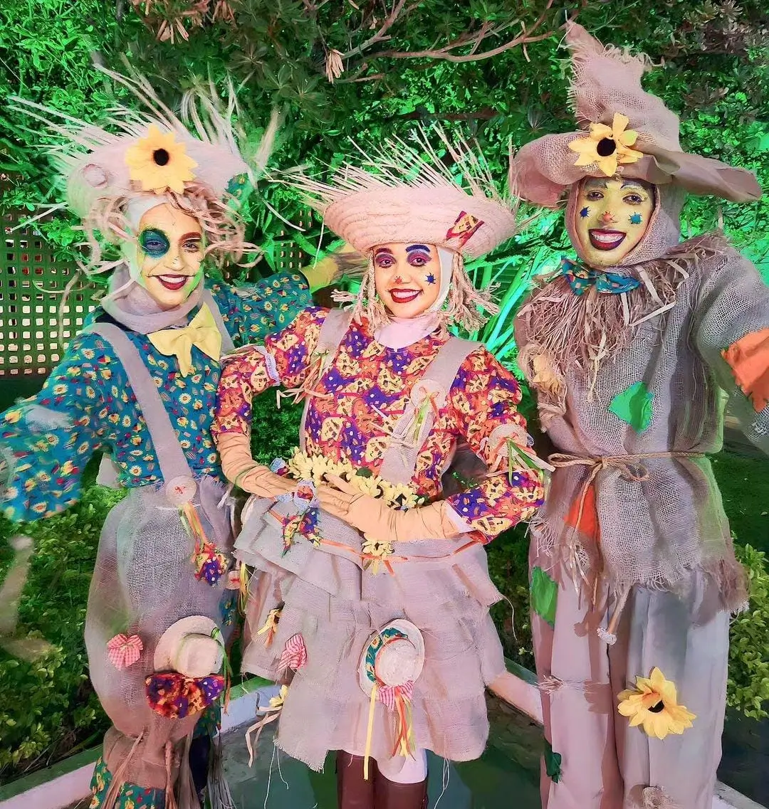 Com os nossos personagens juninos, seu evento ganha cor, alma e muita energia boa. Eles interagem com o público, tiram fotos, animam as quadrilhas, fazem brincadeiras típicas e garantem o clima caipira autêntico.